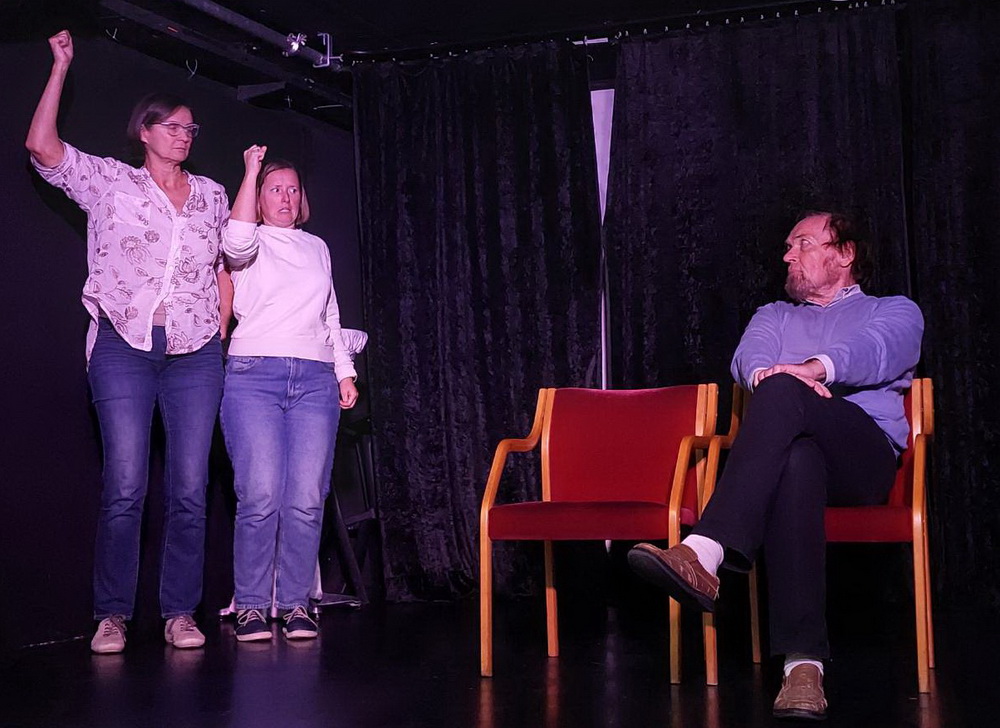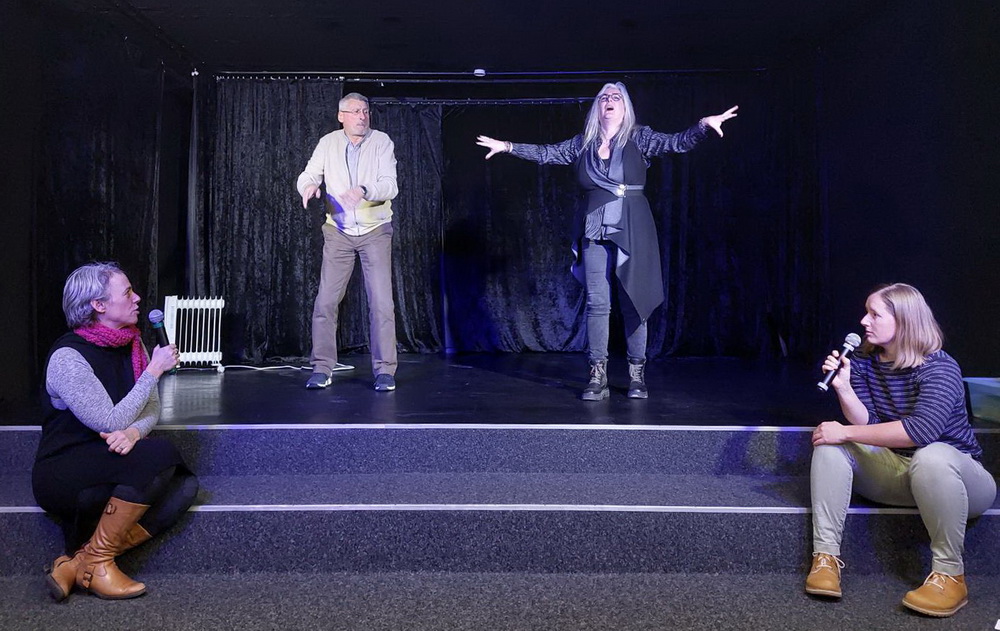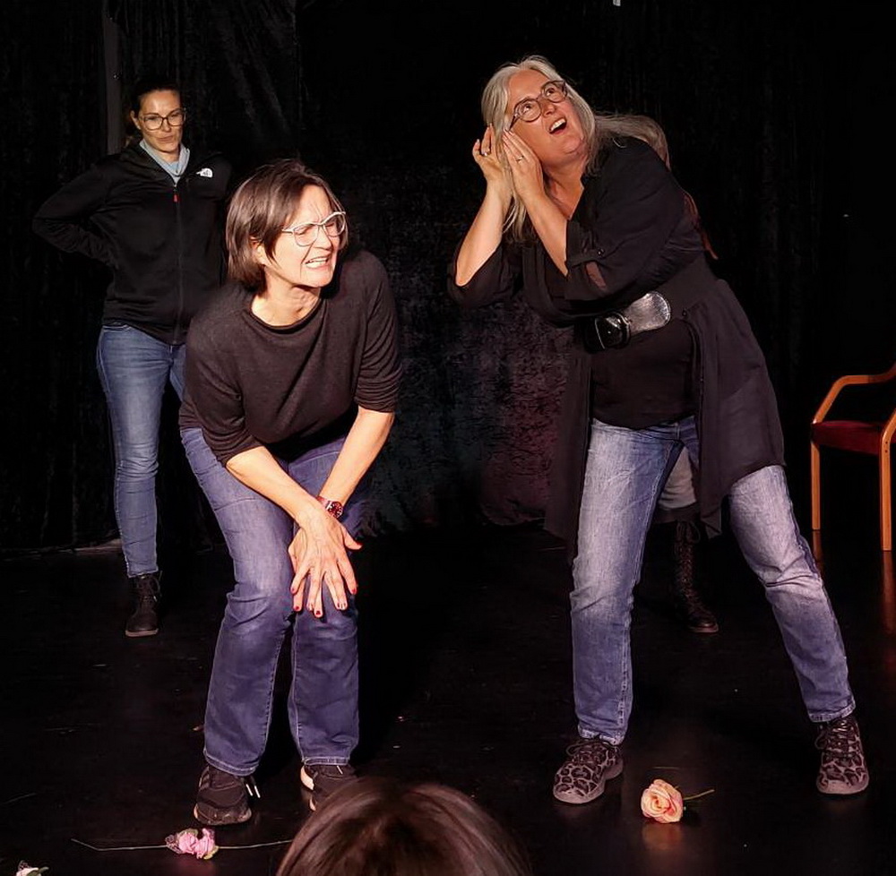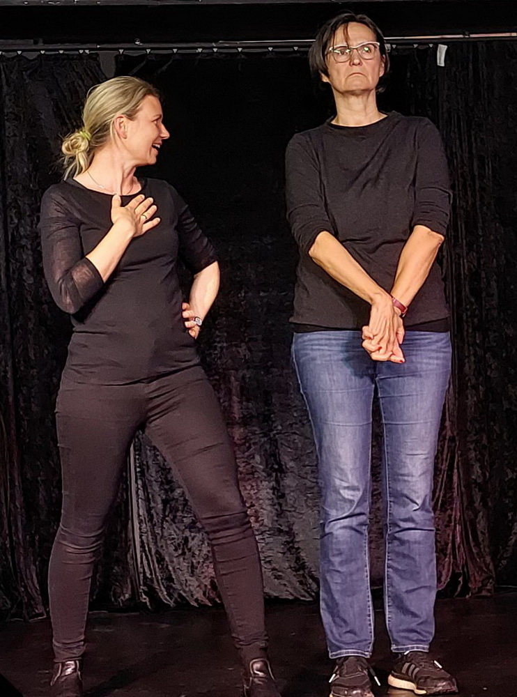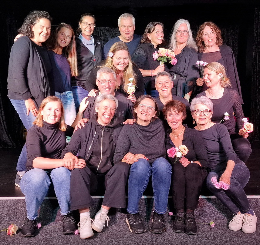 Wir, 17 Männer und Frauen, führen uns seit 2019 regelmäßig auf – ausgestattet mit nichts als Fantasie, dem Mut zu scheitern und einem verdammt guten Teamgefühl. Jede Szene, jede Geschichte, jeder Charakter entsteht live – aus dem Moment, mit dem Input aus dem Publikum.